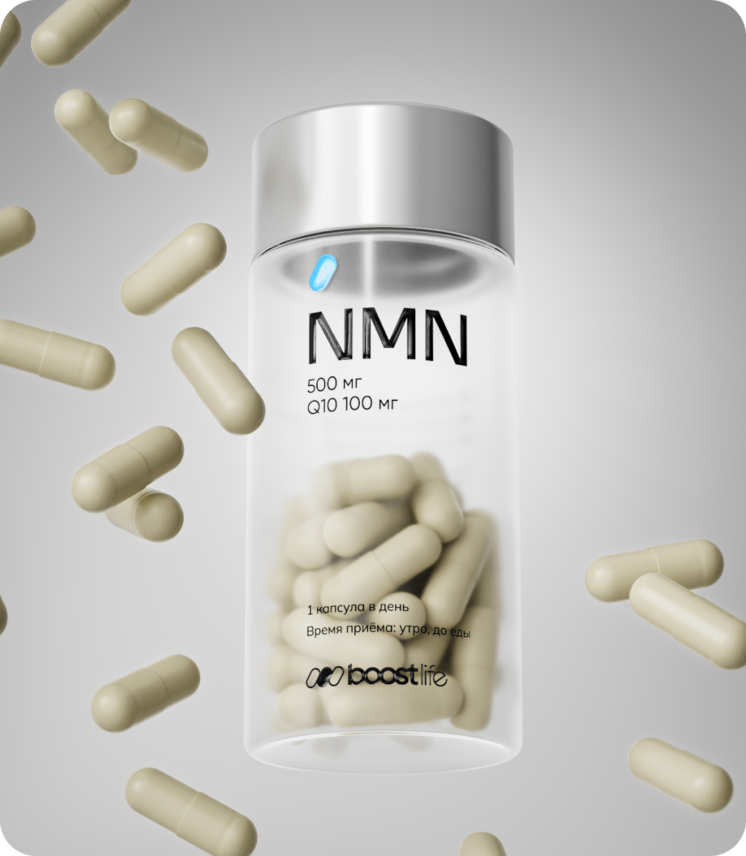 NMN + Q10 — формула нового поколения для клеточной энергии, выносливости и сохранения молодости.